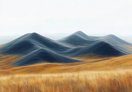 Landscape with hills and dry grass, 3d render. Computer digital drawing.