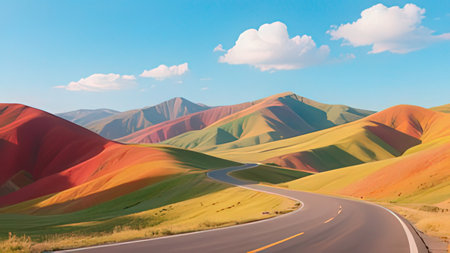 Colorful sand dunes in the middle of the road. 3D rendering