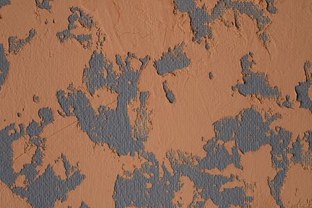 Abstract background, old cracked plaster wall, brown texture, paint stains and cracks.