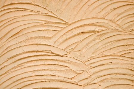 Texture of fresh concrete wall on construction site .Structure of decorative plaster .Uneven wall surface with decorative beige plaster.Saffron plastered brick wall texture.