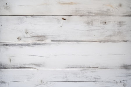 A serene backdrop of white wooden planks showcases a rustic charm, with subtle grain patterns and weathered details. This image evokes a sense of tranquility and warmth, perfect for enhancing any design project with a touch of natural elegance.
