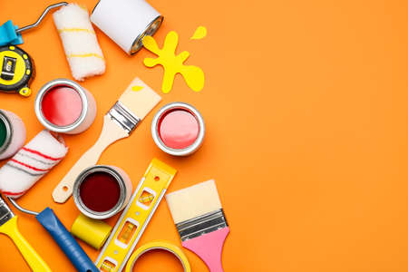 Home repair. Different tools for painting works. The image is suitable for advertising a store of construction products