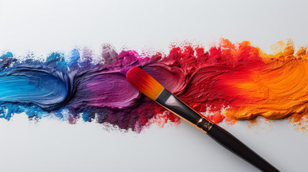 Paintbrush with colorful paint strokes on white background