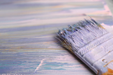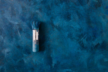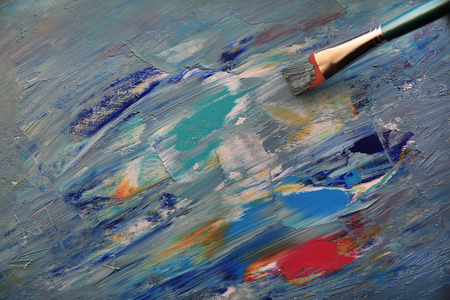 brush on top of finished work of an abstract textured painting or photography backdrop with blue and white tones acrylic paint
