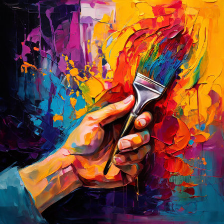 The artist's hand holds a brush over the canvas. Generative AI