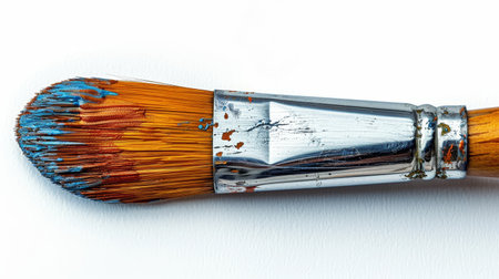 Colorful paintbrush on weathered table bristles worn