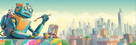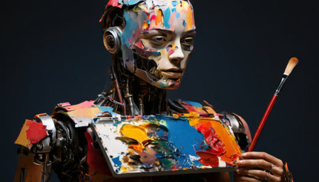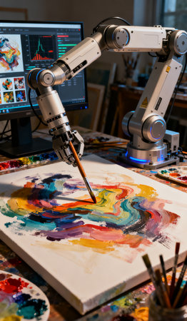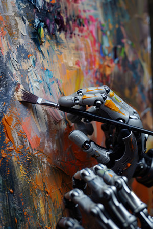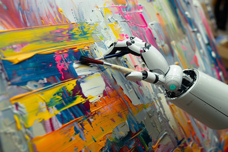 Artistic robot painting with colorful brush strokes