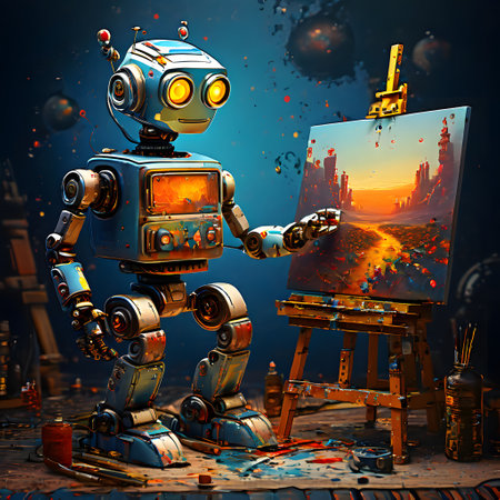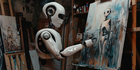 Robot working on a painting in his studio.