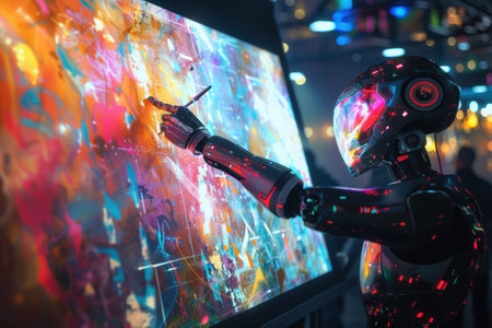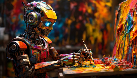 Robot artist painting colorful abstract artwork