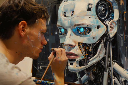 A human painting a portrait of a robot AI generated