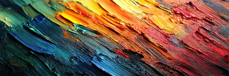 Close-up view highlights the intricate brush strokes and rich texture of vivid acrylic paint layered on canvas, capturing the essence of artistic expression.