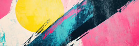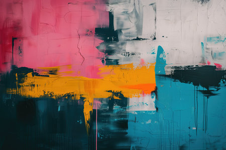 Abstract colorful background with geometric textured oil or acrylic shapes. Artistic banner with expressive graffiti wall texture and brush strokes