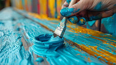 A closeup of vibrant paintbrushes dripping colorful paint onto a surface, showcasing the beauty of artistic expression and creativity through vivid hues and textures.