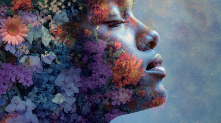 African female with floral beauty artistic portrait.