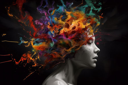 colorful woman head. creative mind. fictional person. Generate AI
