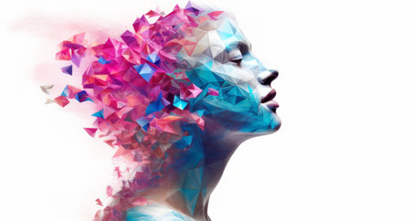 A womans face is shown in a colorful image, AI