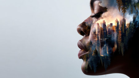 Portrait blending human and nature elements, symbolizing unity