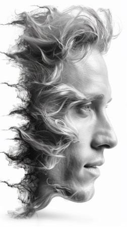 Generative AI, a double-exposure of an adult coming to terms with themselves