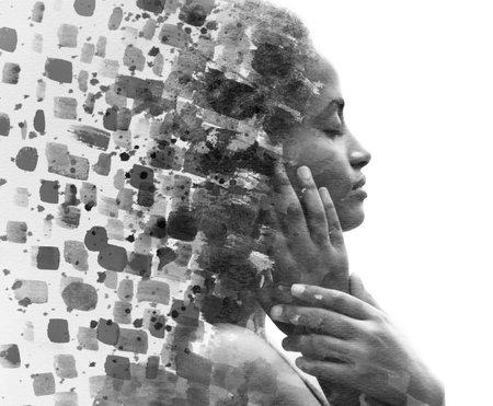 double exposure portrait of a pensive person