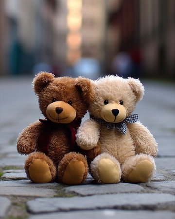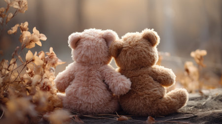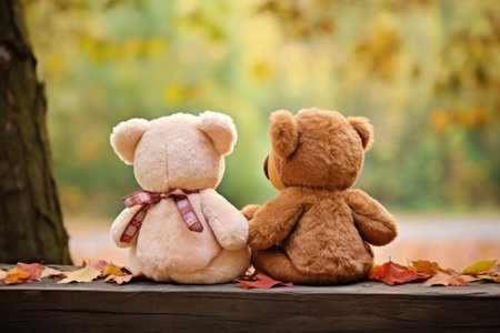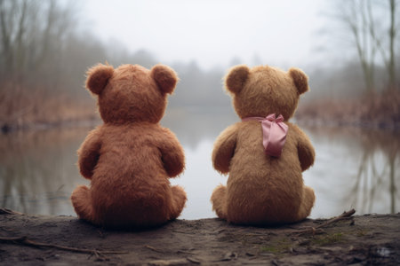 two teddy bears facing away from each other, created with generative ai