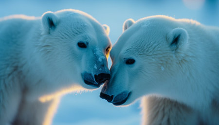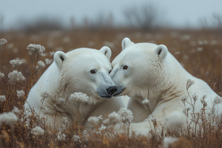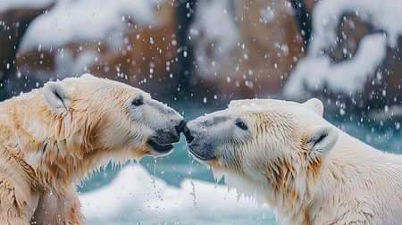 Arctic wildlife in playful motion, side by side, looking ahead generated by artificial intelligence