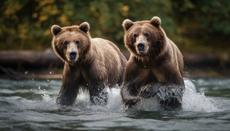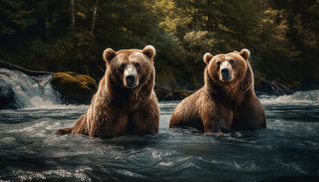 Two big brown bears in mountain river