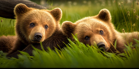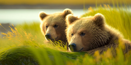 Brown bears resting in their natural habitat Species: Ursus arctos horribilis Capturing the beauty and serenity of nature