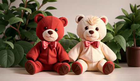 two teddy bears facing opposite directions, created with generative ai