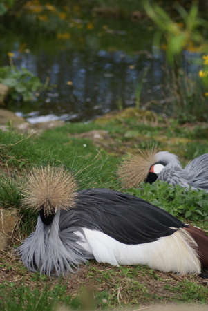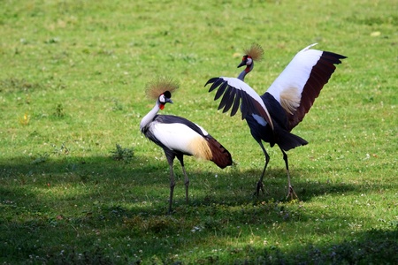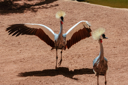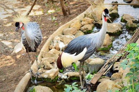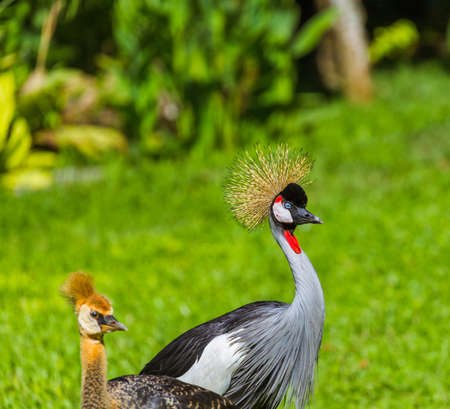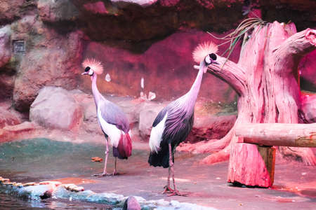 Two beautiful Crested Cranes birds in the Palmitos park in Gran Canaria Spain
