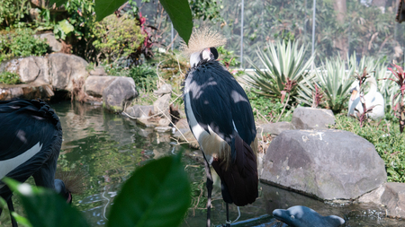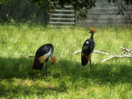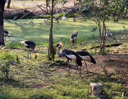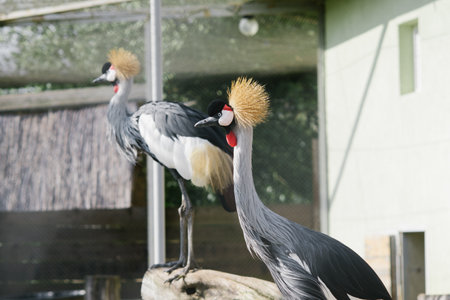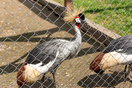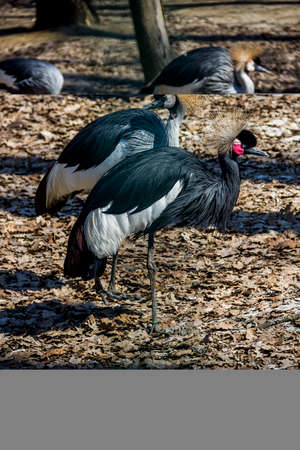 close-up of black crowned cranes (Balearica pavonina) in the zoo