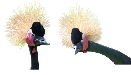 Crowned Crane isolated on white background with clipping path and alpha channel