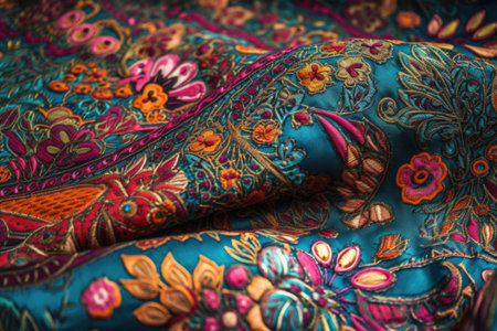 beautiful fabric texture with intricate embroidery and color details, created with generative ai