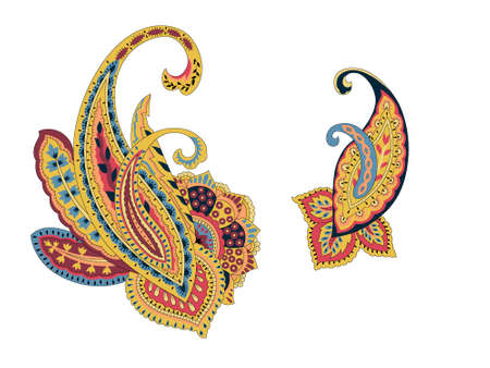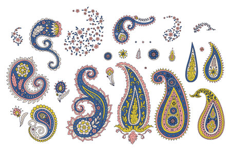 Set of colorful paisley motifs isolated on white background