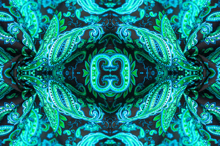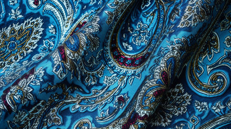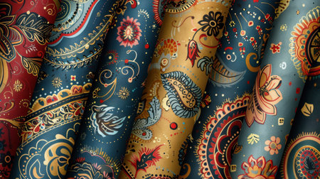 A beautiful close-up of a colorful paisley pattern fabric showcasing intricate designs and rich textures, perfect for fashion and textile projects.