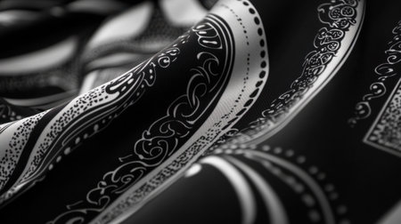 A monochrome scarf with elegant patterns, isolated on white for professional accessories promotions.