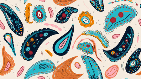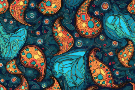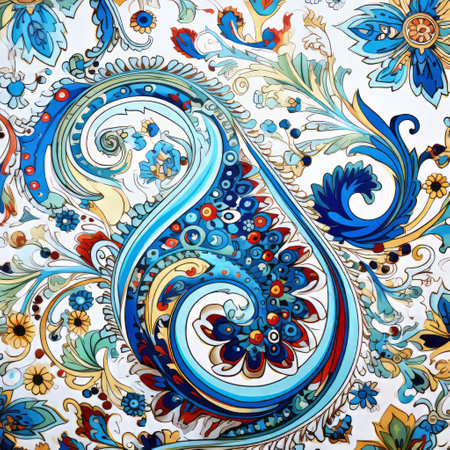 Colorful paisley and floral pattern with decorative elements. That the image is generated using AI.
