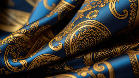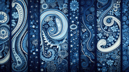 Intricate paisley pattern in deep blue and gold hues creating a decorative backdrop