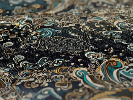 close-up of heavy brocade fabric with intricate patterns, created with generative ai