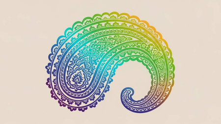 Colorful paisley pattern inspired by the 60s hippie movement, featuring rainbow colors