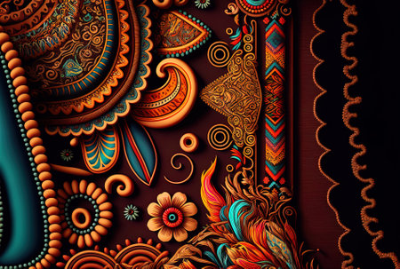 Colorful abstract paisley and floral pattern with intricate details. That the image is generated using AI.