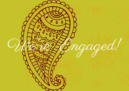 We are engaged text against decorative floral design on yellow background. engagement invitation and celebration card template design concept