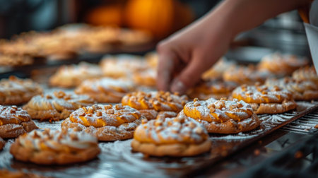 Halloween, the spookiest day of the year. A kitchen filled with the aroma of baking cookies, as a baker prepares a variety of Halloween-themed treats.