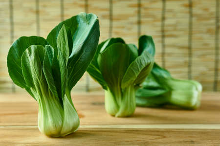 Chinese cabbage pak choi on wooden table