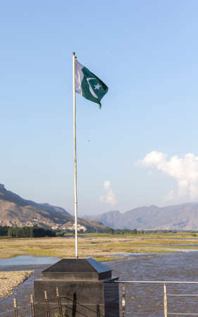 Pakistan flag with a beautiful scenery background