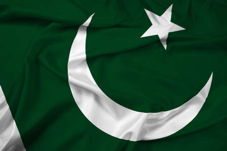 Pakistan fabric flag. Patriotic background. National flag of Pakistan