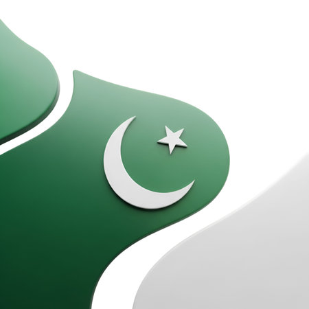 The Pakistani flag, featuring the white star and crescent symbolizing progress and light. Concept of Pakistani patriotism, national pride, and Islamic identity. 3D illustration.