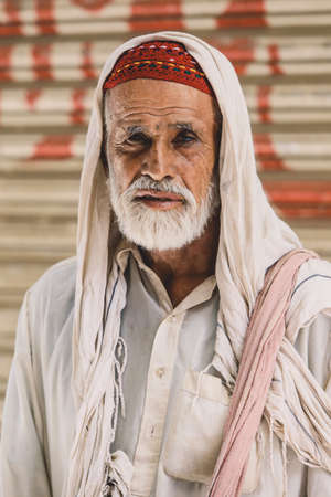 Peshawar, Pakistan - July 21, 2021: Old Pakistani Man with the Beard in the Peshawar City Center
