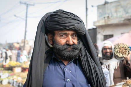 Lahore, Pakistan - October 2019: Bearded Man in traditional turban
