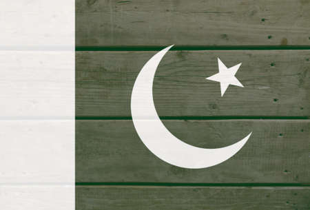 Pakistan flag painted on wood plank background. Brushed natural light knotted wooden board texture. Wooden texture background flag of Pakistan