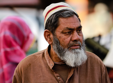 Peshawar, Pakistan - July 21, 2021: Portrait of the Smiling Pakistan Seller Man in the Peshawar City Central Market